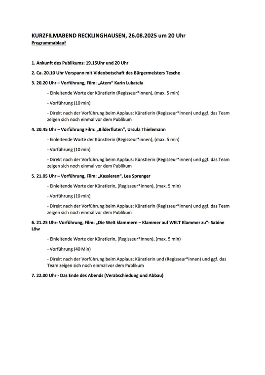 Im Rahmen des Kurzfilmeabend wird am Willy-Brand-Park in Recklinghausen u.a. der Film ATEM aufgeführt.
